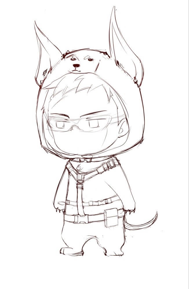在角色概念阶段,通过草图尝试不同的比例与造型方向,探索百目鬼在Q版风格下的角色表达。设计过程中结合“金毛犬”与“杜宾犬”的意象,对角色气质进行视觉转译,以寻找更符合人物性格的造型方向