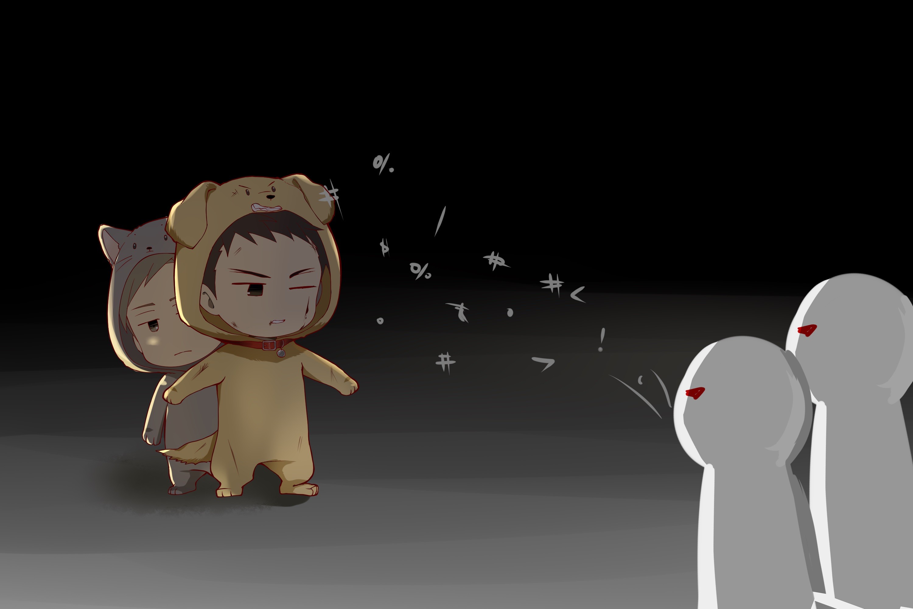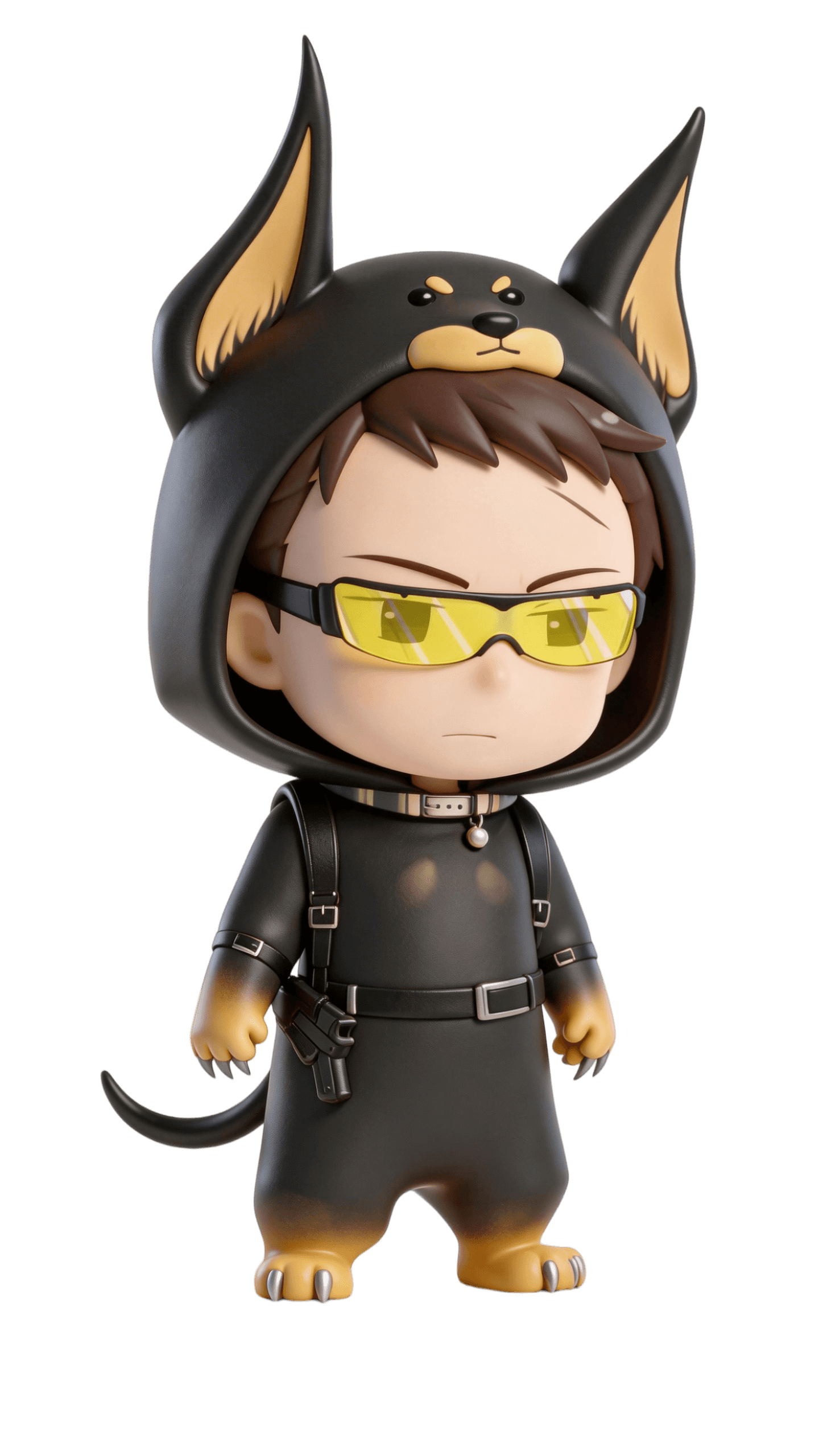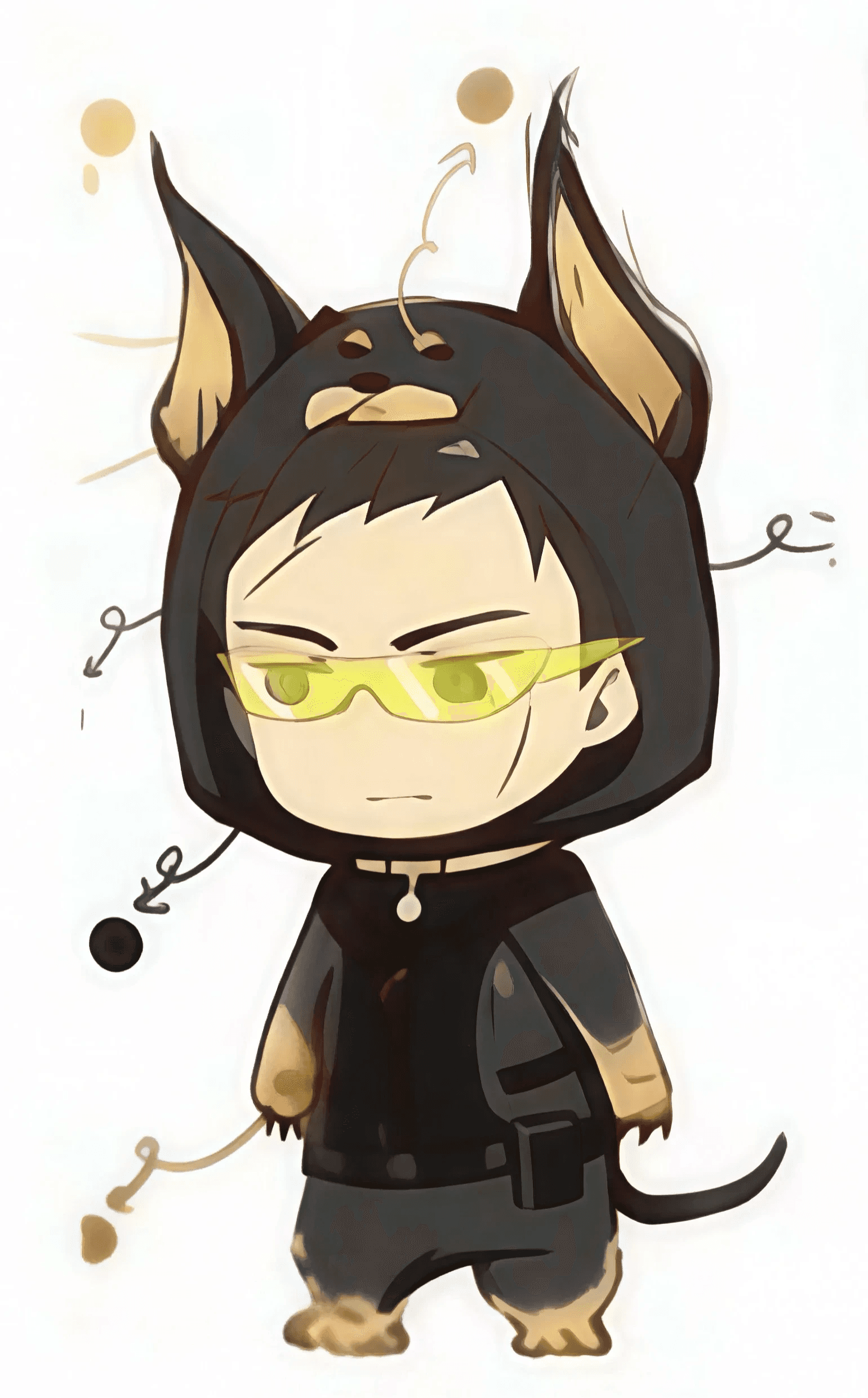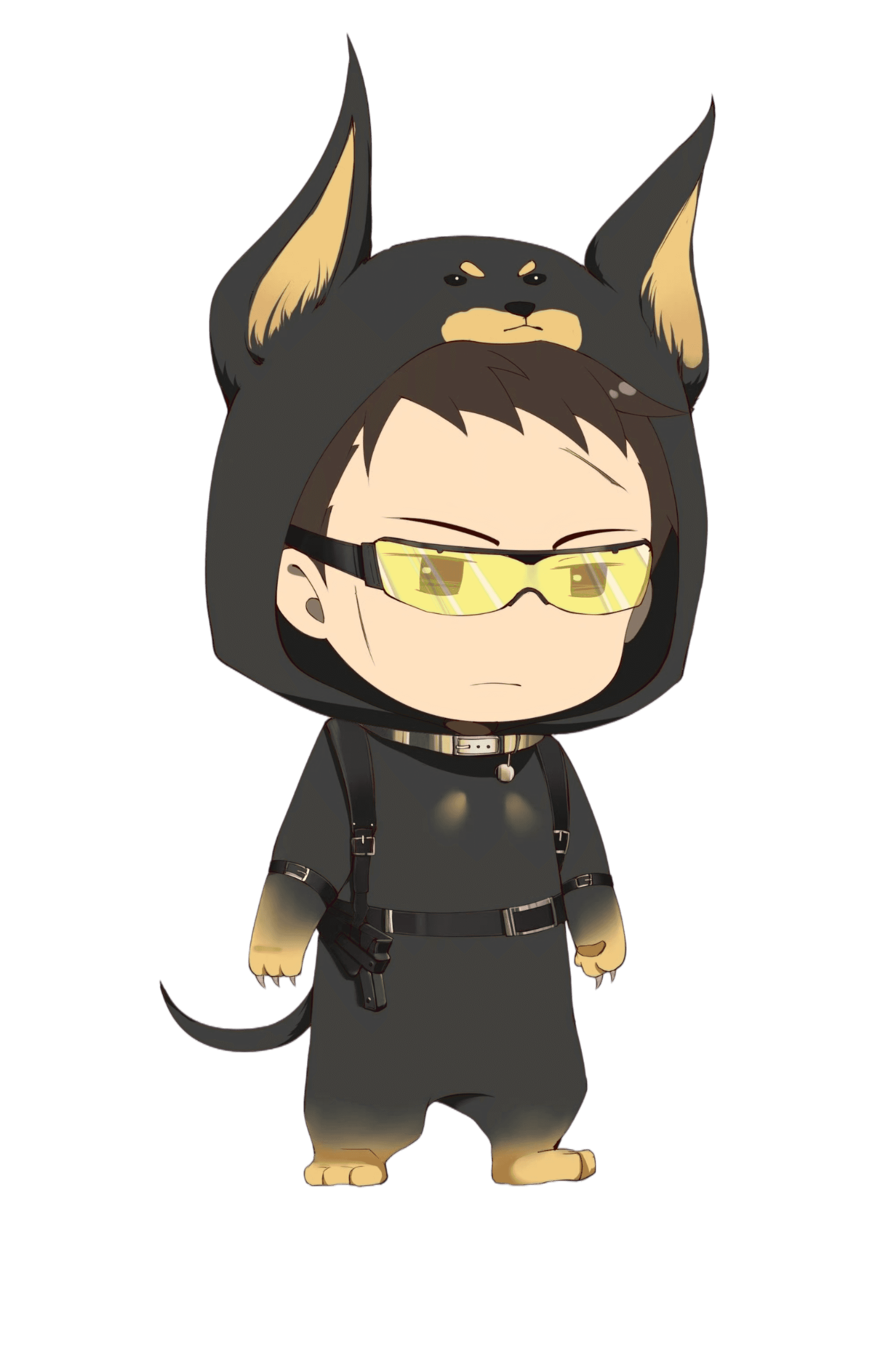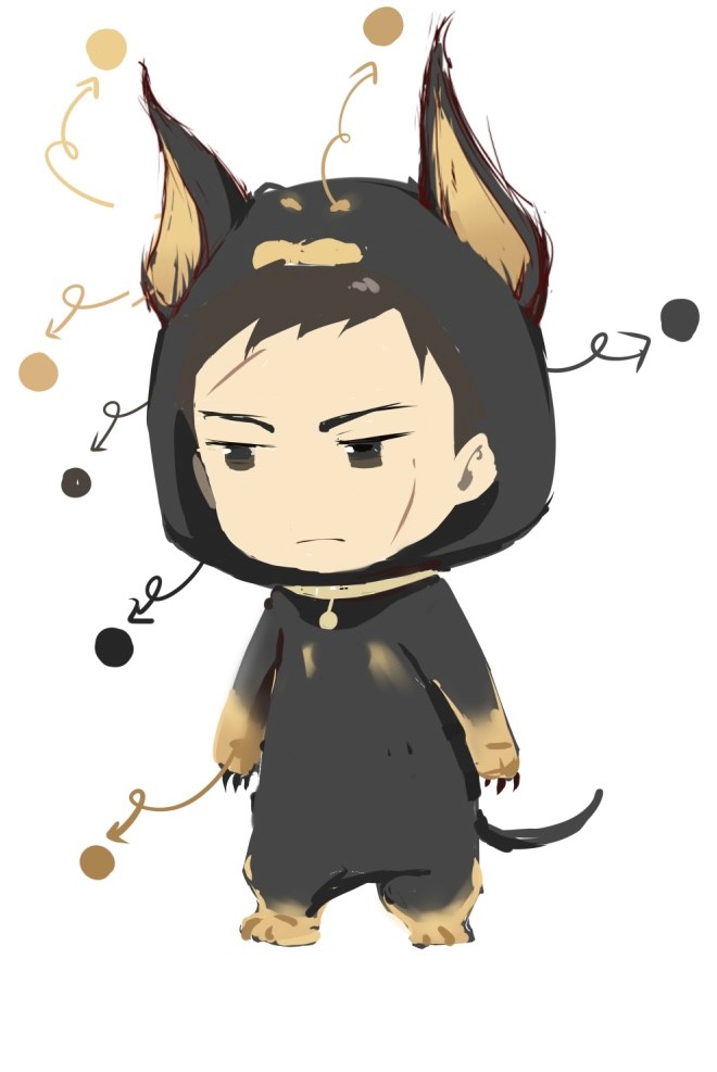 在角色概念阶段,以“金毛犬”与“杜宾犬”两种犬类意象对应百目鬼不同时期的气质变化,并将这种性格差异转译为Q版角色的整体方向,使角色不仅保留原作特征,也具备更鲜明的拟人化设定