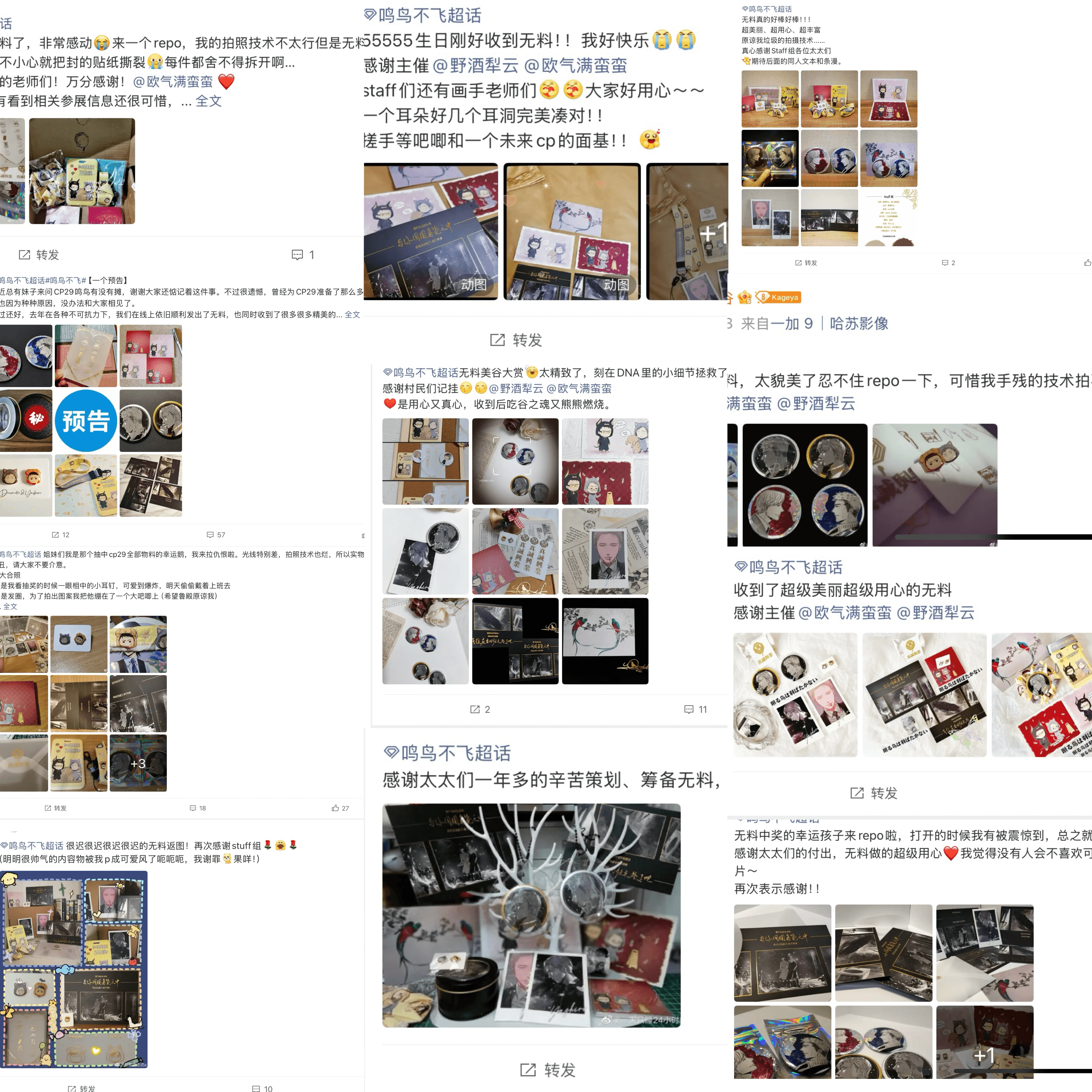 CP29活动结束后,部分观众在《鸣鸟不飞》超话与社交平台分享无料物料与周边照片,引发粉丝互动与讨论。相关帖子累计阅读量超过 50万+,并吸引数千位粉丝参与互动与分享
